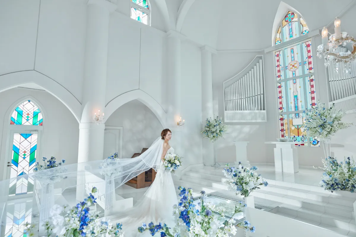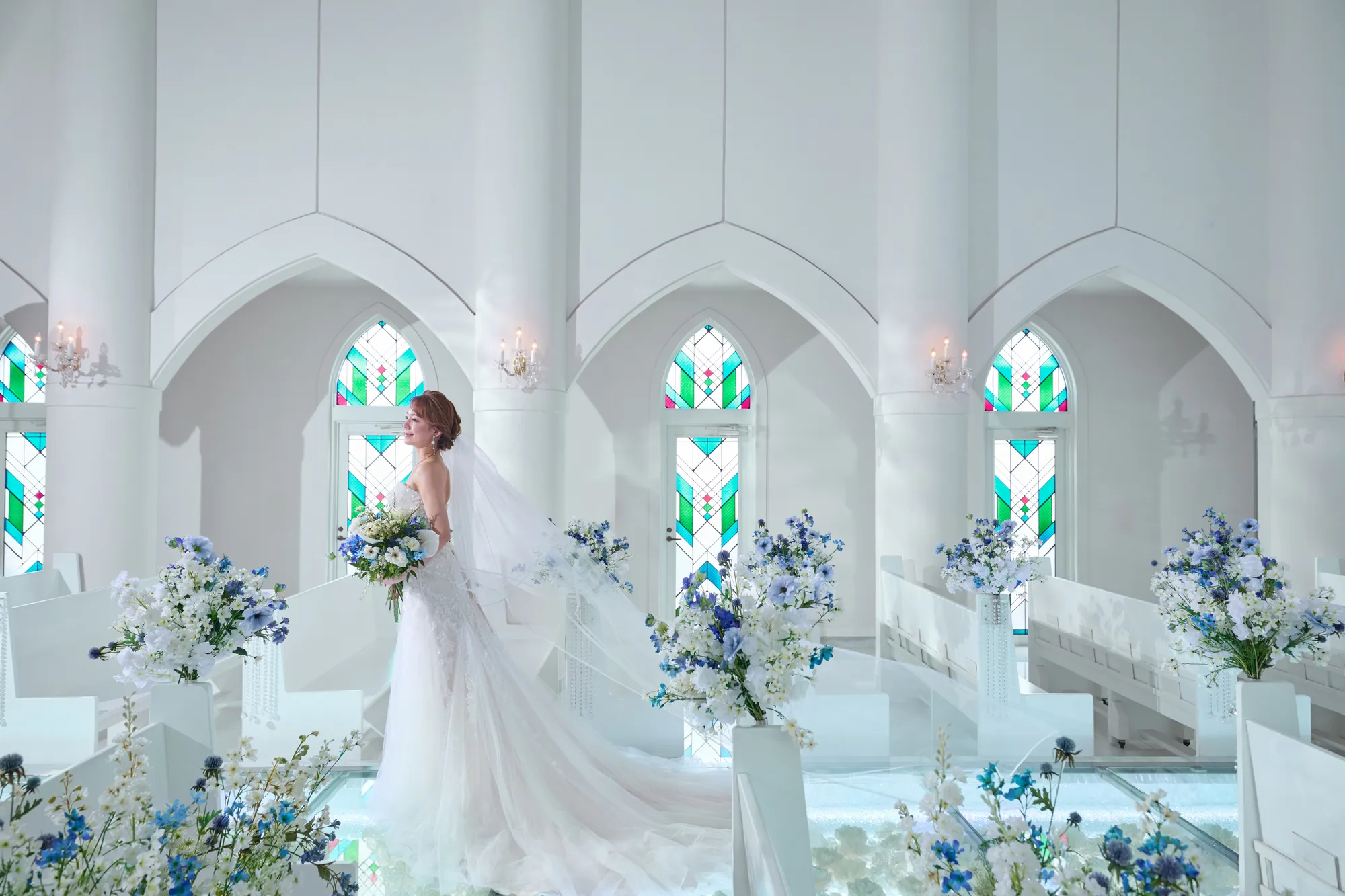 ステンドグラスとガラスのバージンロードが美しい白亜のチャペル「クォーレ」