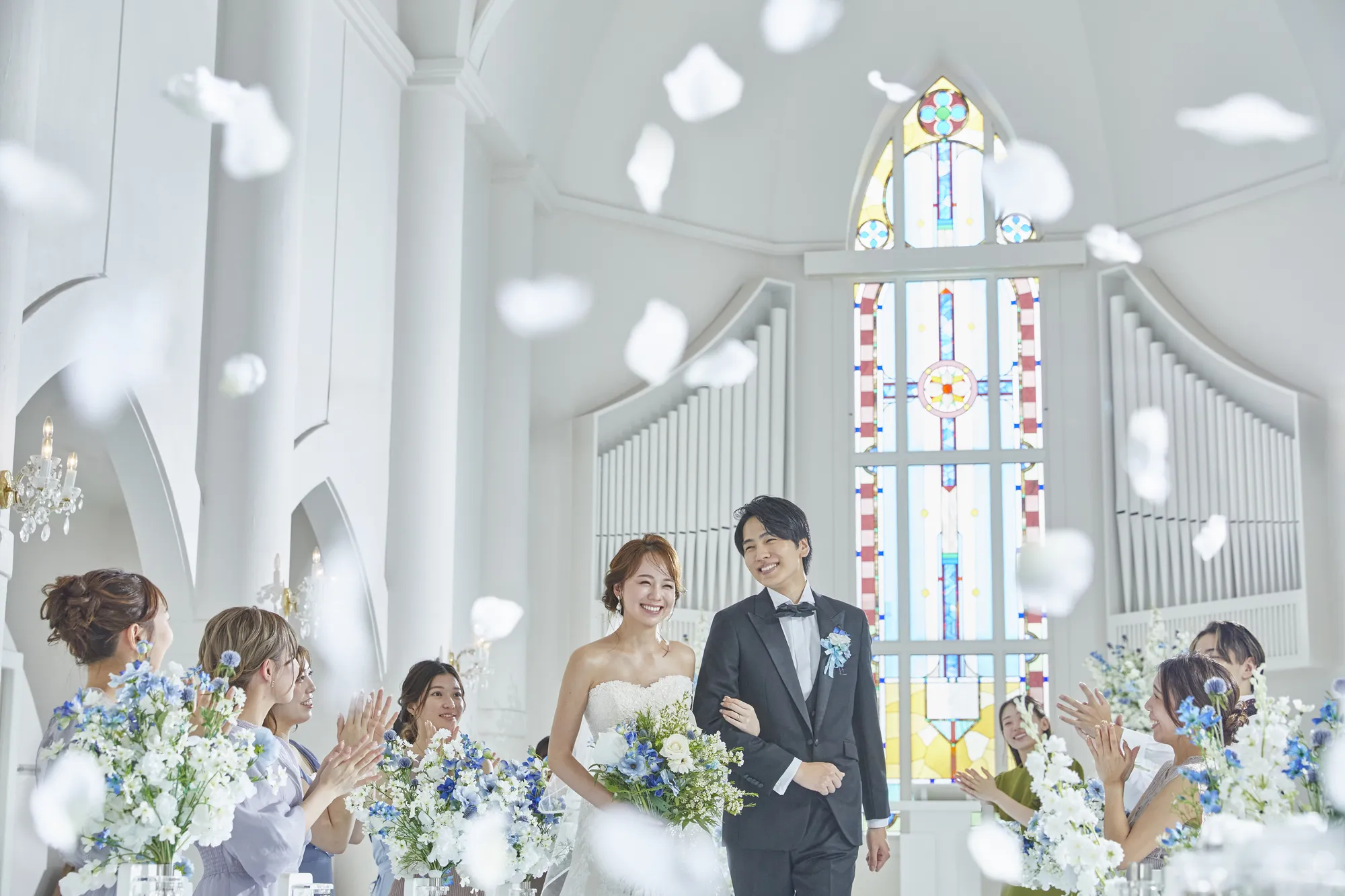 ステンドグラスから差し込む自然光 優しく響くパイプオルガンの生演奏に包まれてあたたかなセレモニーが叶います