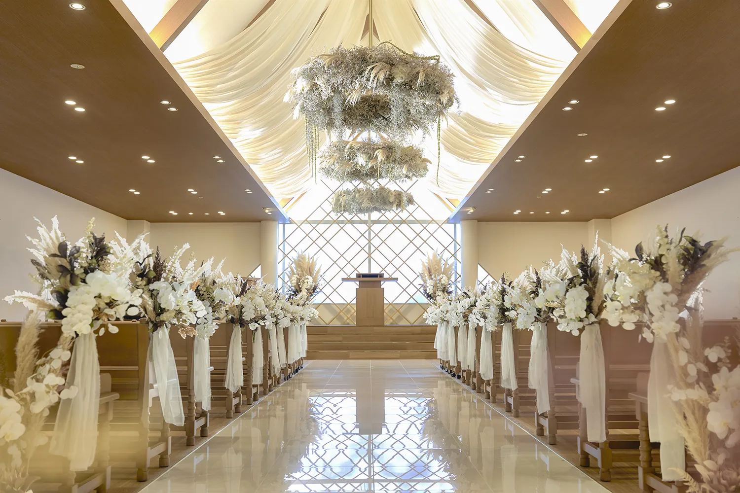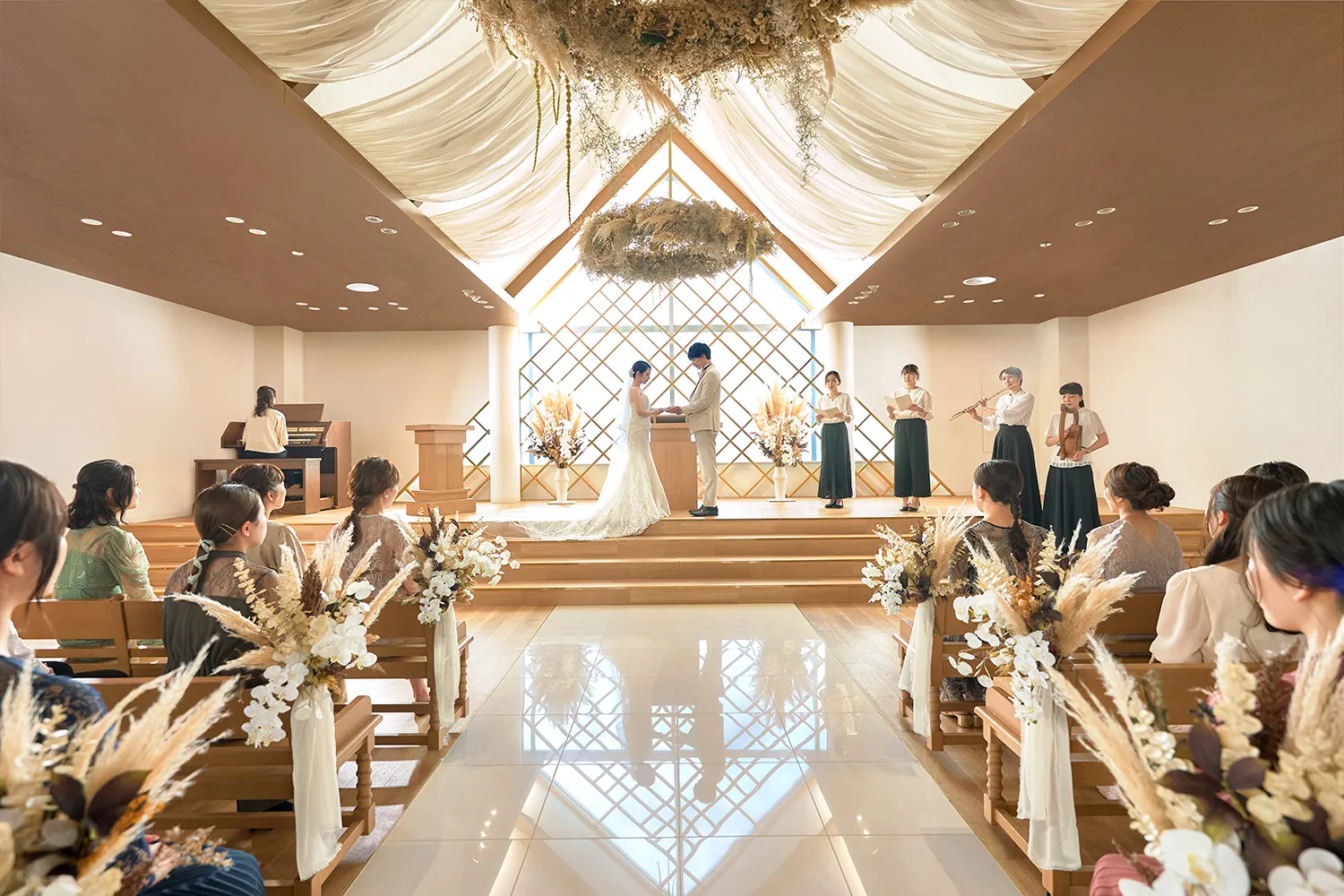 上品だけどあたたかい 高級感とナチュラル感を融合させたチャペルならではの自由な空間を演出します