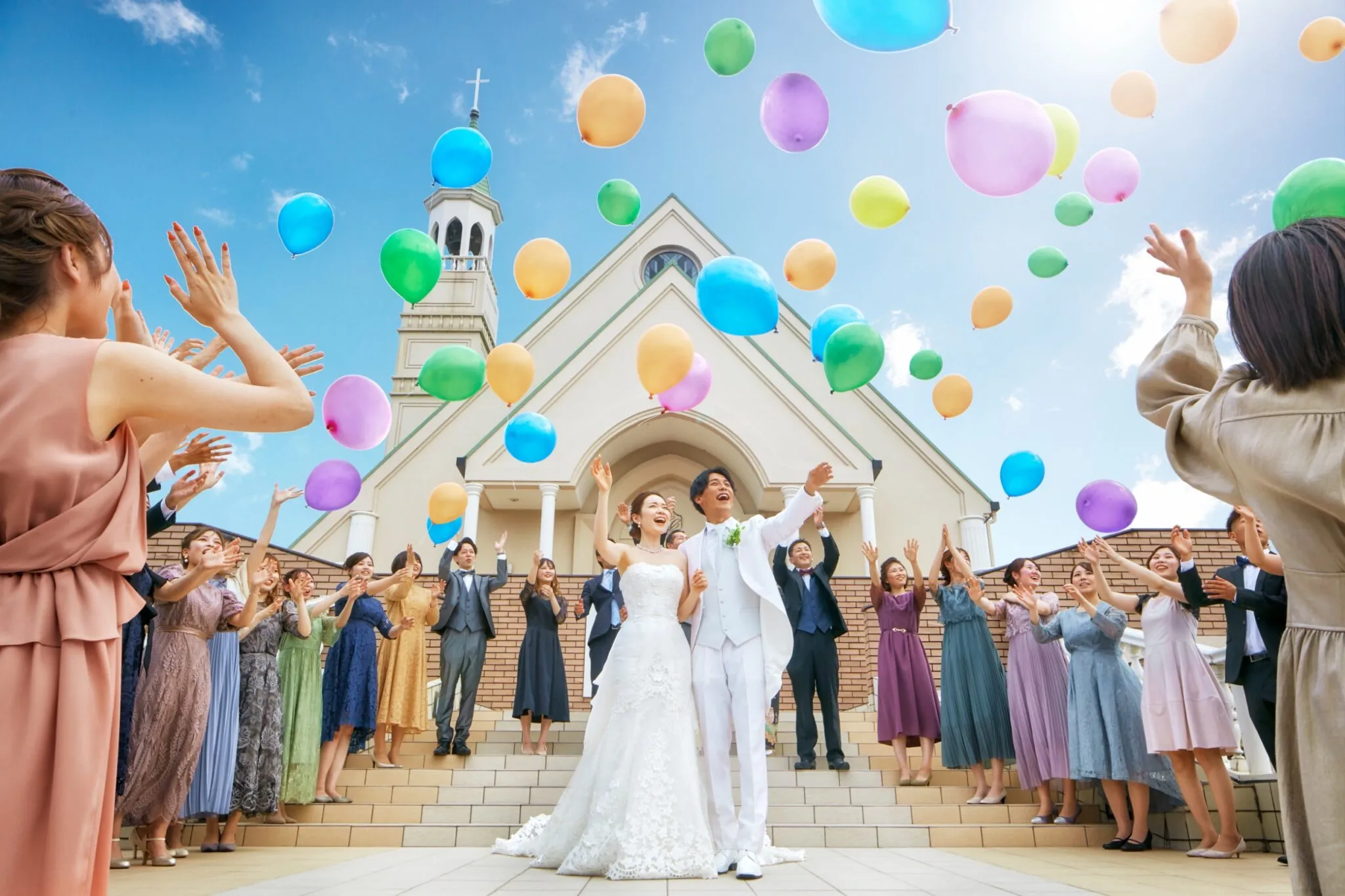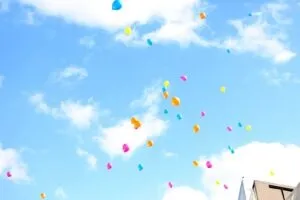 バルーンリリースは「新しい門出を祝う」「幸せが天まで届くように」との意味が込められています