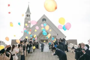 チャペルでの挙式後のアフターセレモニーで